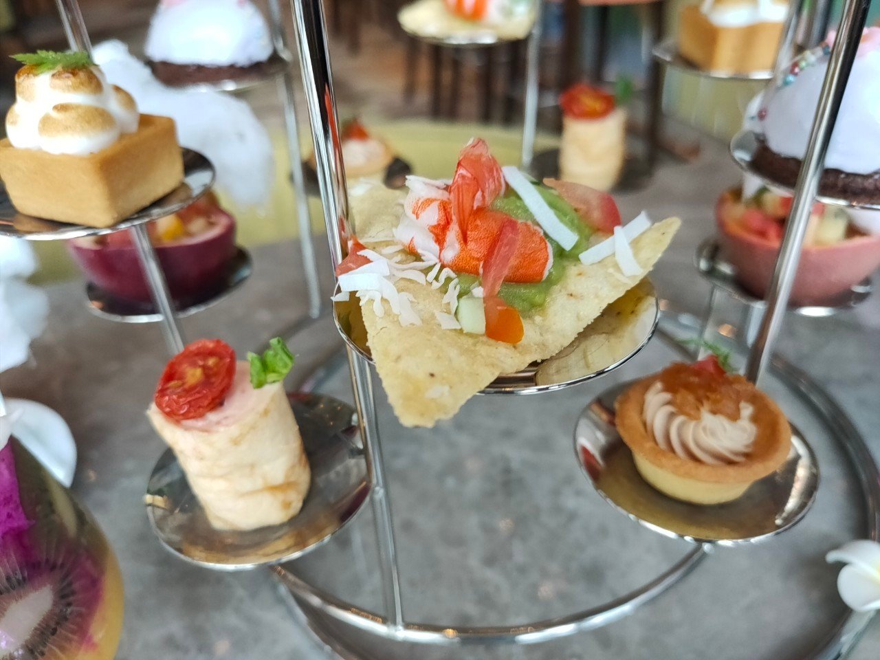 另外還有許多以熱帶水果設計的小甜點,像是芒果蛋糕、檸檬塔以及酸爽滋味的鹹點等等,就連巧克力裡頭也有酸甜的水果餡呢!最特別的是,主廚特別設計了「芋頭小蛋糕」,是因為夏威夷當地其實也有盛產芋頭喔~