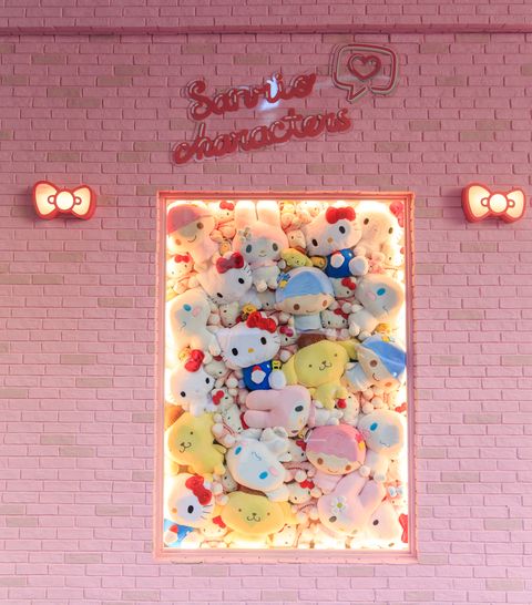 聯名店櫥窗打造Hello Kitty與三麗鷗家族成員絨毛牆