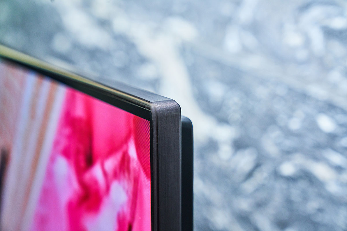 ▲可以發現近年來液晶電視在外型設計上普遍強調能充分融入居家空間,如此次評測的 KD-65X9500H 就做了很好的示範,採用纖薄設計概念,透過更薄的機體、幾近無邊框的手法,打造出幾乎是完全貼合、融入進電視牆的全面屏效果,達到為居家空間質感加分的效果。