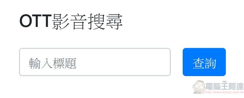 現在越來越多正版的影片觀影管道,不過除非是用習慣的平台,不然要找新播出管道資訊總有點頭痛,而這個簡易搜尋網頁「OTT影音搜尋」就能提供解決之道,除了介面單純外,常用的幾乎都有涵蓋。不過網頁也有註記Youtube平台因技術問題暫時下架;而搜尋僅供參考,結果可能遺漏,平台搜尋可能因網站改版而失效,但目前來說算是很實用的正版影片平台查找工具。