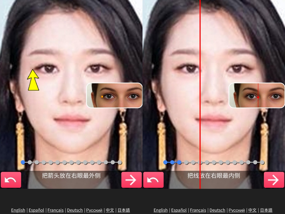 之後會出現不同的指示,可以根據指示將照片上的箭頭或線條稍微移動、放在照片中相對應的位置即可。