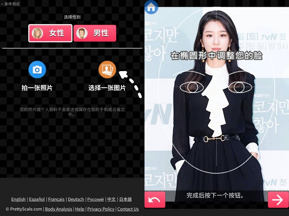 測臉型步驟1:選擇語言