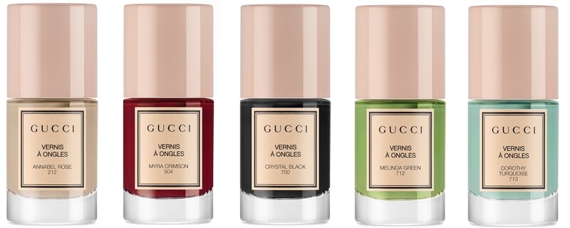 Gucci Beauty秀色在握指甲油首波推出為炎夏打造出的五個鮮明色調:米蘭達綠、多蘿西綠松石、瑪拉緋紅、安納貝爾玫瑰和黑水晶,是設計總監Alessandro Michele最愛的顏色,同時也是Gucci時裝系列裡最經典的顏色,並向鍍金時代的好萊塢經典電影及角色致敬。