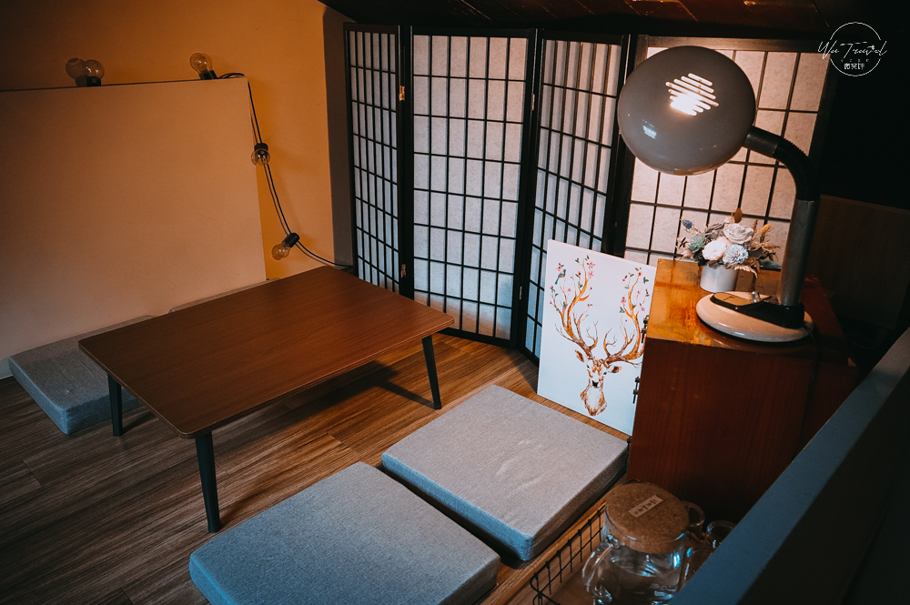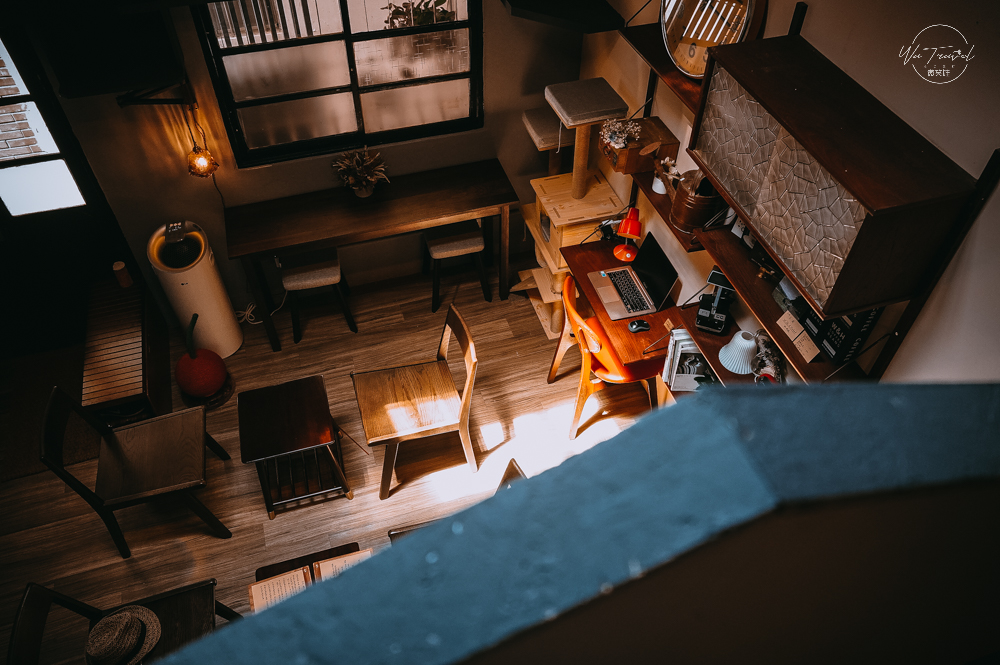 在弄宅咖啡廳裡面還有一個小閣樓,外觀是像個房子,好像從一個屋子又到了另一個屋子,充滿日式老件的設計,也讓百年老屋的氛圍回到日治時期,讓這裡充滿色彩。