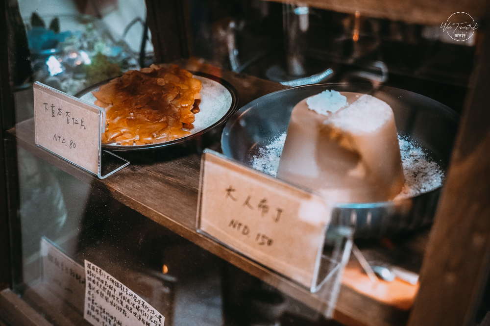 大人布丁是由光旅手作門的門主所操刀,連同大小老闆公共同研發,屬於宅弄的限量甜點,刻意減低糖分的布丁代表著每個人還未包裝過的個體,現場研磨的紅糖入碗中,一邊放入細紅糖、一邊放粗紅糖,以口感代表著人生當中會遇到的大小事,並於布丁的頂端遞上一匙酒釀,帶點微酸後苦說著成年後,在生活中遇到的酸甜苦,帶有口感的布丁蛋香味濃厚有著香草豆莢與減糖設計搭配紅糖與酒釀,是從未體驗過的布丁滋味。