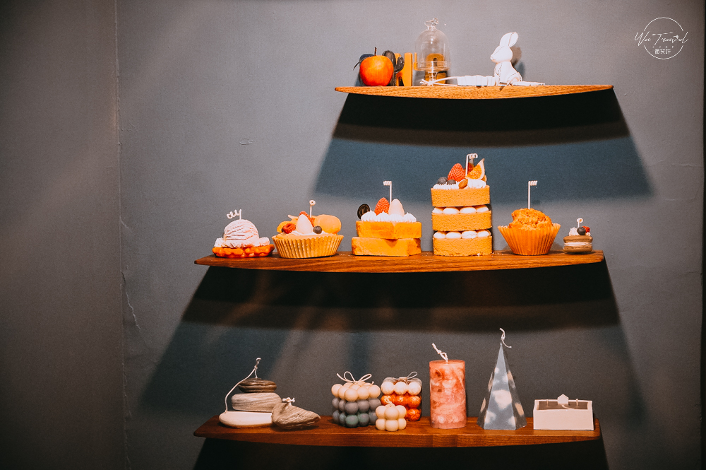 小小弄宅櫥窗使用木製與玻璃櫃製成,裡頭放的甜點都是用蠟燭仿製真品甜點而成,相似度超高。