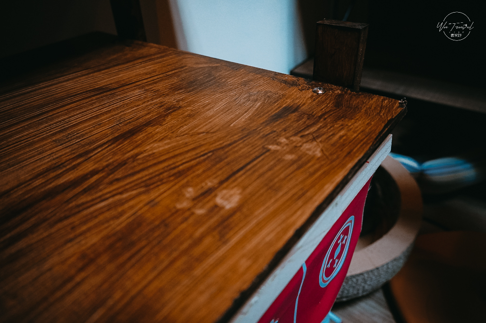 小貓咪們在弄宅咖啡廳找到暫時的住處,也在這尋找家的開始,印製著招財的貓咪木製床鋪,上面還壓印著貓咪的真腳印,可愛極了。