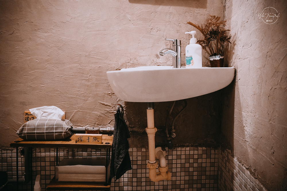 御手洗小小的空間是長型設計,開啟了木門後不會馬上看到馬桶,而是先看到的洗手處,充滿了日式的內斂,牆面四周沒有很奢華的設計,反倒是給我一種侘極日式極簡風格感,格外舒服。