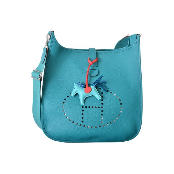 Hermès 每一項商品的設計核心,皆不脫離品牌馬術用具的這項核心,這款 Evelyne 包款,初始的設計靈感是來自餵馬的工具袋,為了保持工具乾燥,因此才會在袋子上鑿出 H 字樣的通風孔洞。