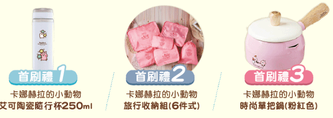 活動期間內,新戶申辦合作金庫卡娜赫拉的小動物icash聯名卡,核卡後45天內一般消費刷任2筆滿888元以上且成功自動加值1次享以下好禮三選一: