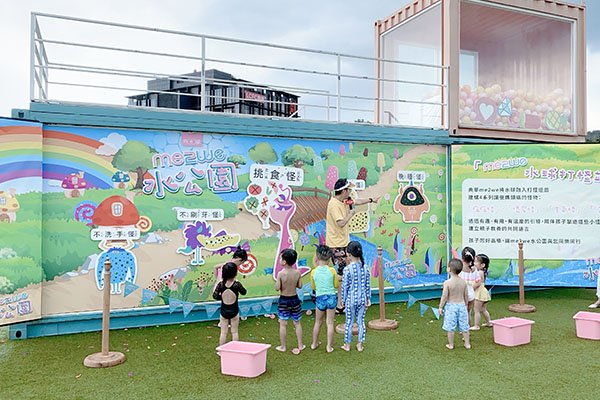 馬卡龍貨櫃更是「me2we水公園」的主題大秀!由「寓教於樂」為出發點,以說故事、冒險的方式教小朋友丟水球打擊各種讓父母頭痛的怪獸:病病怪、沒品怪、生氣怪、壞習怪……讓孩子從遊戲中修正自己的行為。