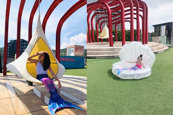 想培養小小網紅?這裡有一般家庭都捨不得買的「人魚尾巴」套裝、貝殼充氣泳圈,還有超高難度的空中慵懶吊床,大人小孩都能當一日網美!