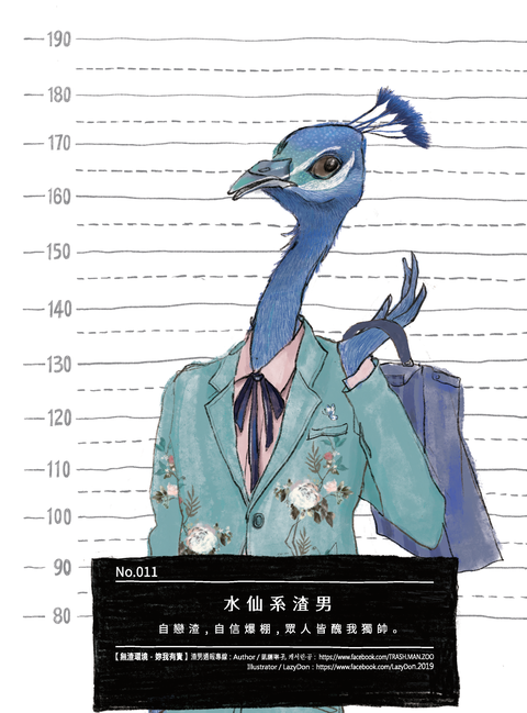 「自戀渣 ‧ 孔雀先生」,自信心破表的怪胎,自詡為天菜,篤信自己人見人愛。孔雀先生對於自己的迷戀,已經到達讓人難以理解的程度。他們自以為帥、自以為屌、自以為很有想法、自以為與眾不同、自以為高人一等。