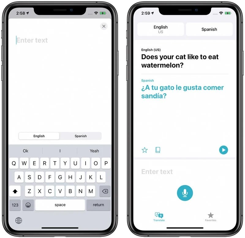 Apple 新增到 iOS 14 中的翻譯應用擁有相當簡單、易於使用的介面,可讓你從頂端選擇想要翻譯的語言,還可以選擇鍵盤輸入或貼上要翻譯的文字,又或是點擊麥克風選項後以口語方式來輸入。翻譯的內容以大字體顯示,原始的輸入文字採黑色顯示,翻譯結果則以藍色來顯示,並且可以在 iPhone 上點擊播放來讀出翻譯內容,讓你能夠聽到正確的發音,或與不同語種的人互相溝通。該翻譯應用程式可進行阿拉伯文、中文、英文(美式與英式)、法文、德文、義大利文、日文、函文、葡萄牙文、俄文與西班牙文等 11 種語言的互譯。