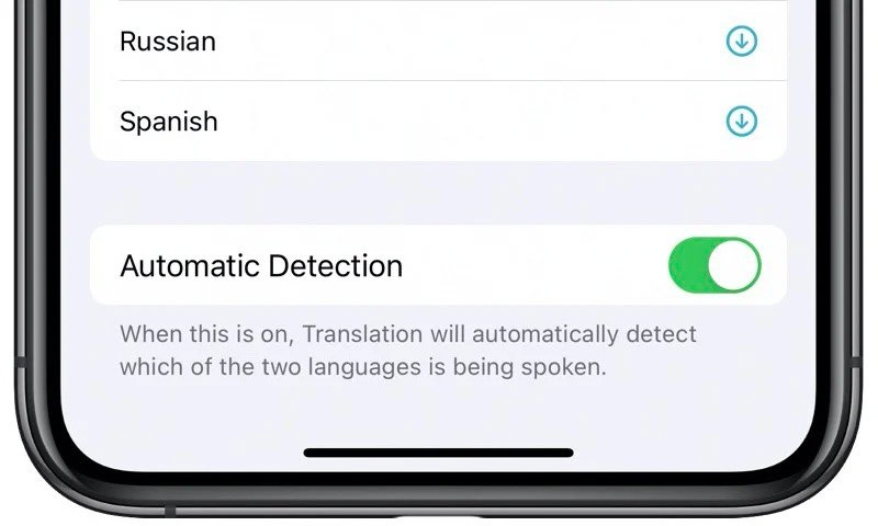 如果你想將對話模式與自動語音檢測功能一起使用,可在頂部的語言選擇項目中向下捲動以確保開啟自動檢測功能;倘若自動檢測功能效果不彰,你可以透過關閉應用程式底部的兩個麥克風(該麥克風會在自動檢測功能關閉時顯示)來禁用它並且對話,可確保 iPhone 正確聆聽並翻譯成正確的指定語種。