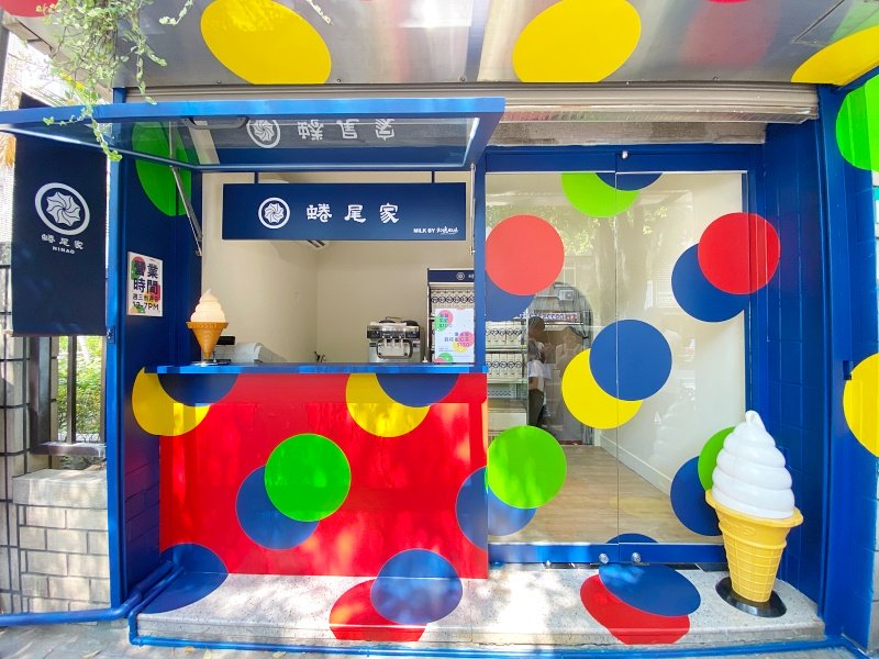 蜷尾家的台北快閃店插旗在城市綠洲的「民生社區」,店面以鮮豔又亮麗的圓形做點綴,不只象徵了每每在口味上推陳出新的創造力,也在巷弄中增添一股繽紛活力。