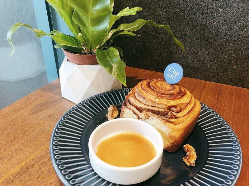 而Cupoti店內最招牌的甜點非「肉桂捲」莫屬!烤得外酥內軟又帶有濃濃肉桂香氣,每一層外皮撕開都能吃到麵包細軟的口感,沾上一旁的焦糖醬再搭配咖啡,簡直就是下午茶的至高享受~除此之外,Cupoti還有供應精釀啤酒與調酒,晚上來吃點鹹食也很舒服!