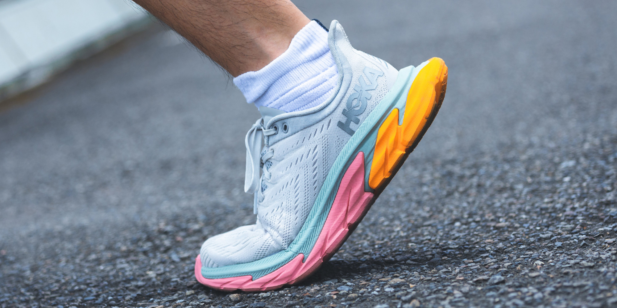如果實體化來比喻,編輯想起在菲律賓搭乘的螃蟹船經驗,左右兩側突出支架就是船體穩定器,原理是提前碰觸海面讓船不會左右搖晃太嚴重,加大船體無形底盤面積同時又擁有小船輕巧優勢,出海坐起來也比較舒適,相似原理讓編輯意識到 Hoka One One Clifton Edge 可以幫助初階跑者去挑戰大海,你只管不斷往前進就好,穩定的事就放心腳給底盤來處理,測試地點因為選在城市中,路面上偶有小碎石都能平穩踩過。另外 Hoka One One Clifton Edge 也有破浪的設計,後跟與鞋尖處上揚的弧度有延續獨家 META-ROCKER 滾動技術的流暢感,而中段則平坦的觸地穩定前後傳導過程,不至於隨時處在滾動狀態,Hoka One One Clifton Edge 所呈現的並非天秤兩端獨特個性,而是兼具像編輯這樣初階跑者要的靈活與穩定,造就超過滿分的均衡表現。
