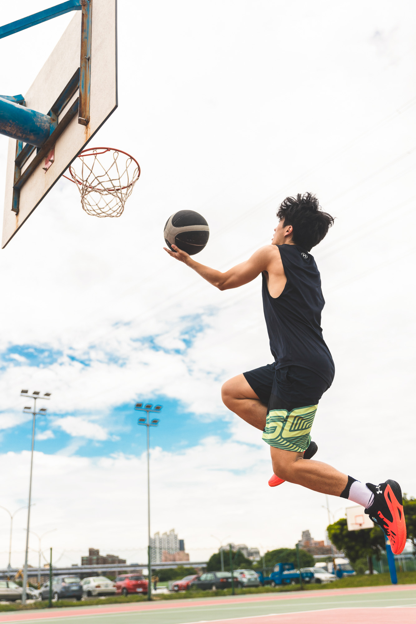 HOVR Havoc 3 跟我很配,怎麼說呢?第一眼看到 HOVR Havoc 3 時就被它的外觀給吸引,鮮紅色楦頭配上黑色鞋身,高調中有低調,是我(相信也是大多數人)喜歡的配色,加上戰鬥感線條設計光看上去就能想像我穿上球奔馳的畫面。性能方面,我是屬於無球跑動以及偏後衛打法的球員,過去打球時也比較習慣穿著中低筒籃球鞋,因為跑動、切入、快攻樣樣都來,所以動態流暢性、重量輕巧以及變向第一拍的反應對我來說非常重要,先說結論,HOVR Havoc 3 滿足我這個類型球員需要的性能表現,並且還給我額外優點,當下有點賺到的感覺,至於是什麼就讓我們留在後面說。
