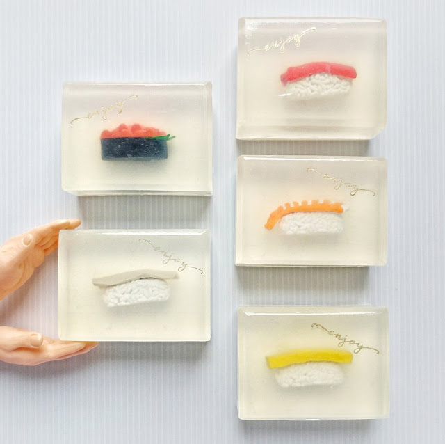 要吃壽司之前,當然要先好好的來洗一下手~這款香皂很有創意,每一顆香皂中都包了不同造型的握壽司橡皮擦,只要你每天認真洗手,就可以把握壽司橡皮擦從香皂中拯救出來!