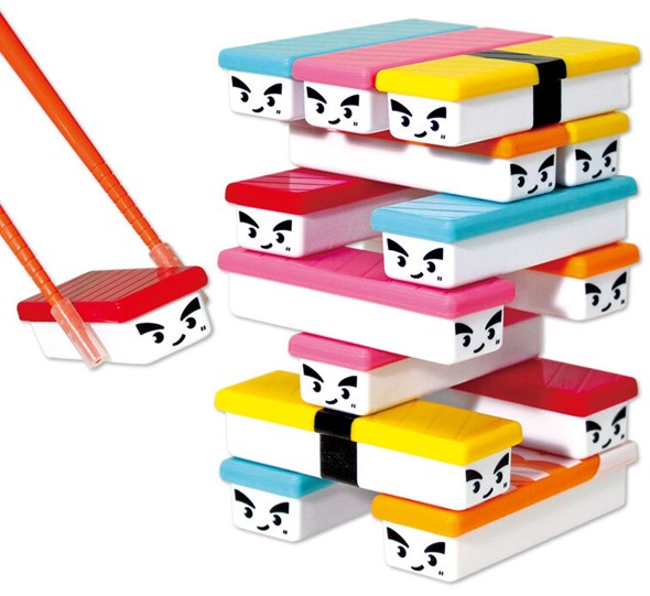 用筷子在夾壽司時,有時候會不太好夾起來,而這款疊疊樂特別做成壽司造型,讓你在邊玩疊疊樂的同時,也能夠訓練到夾壽司的功力,變身成筷子達人(咦)