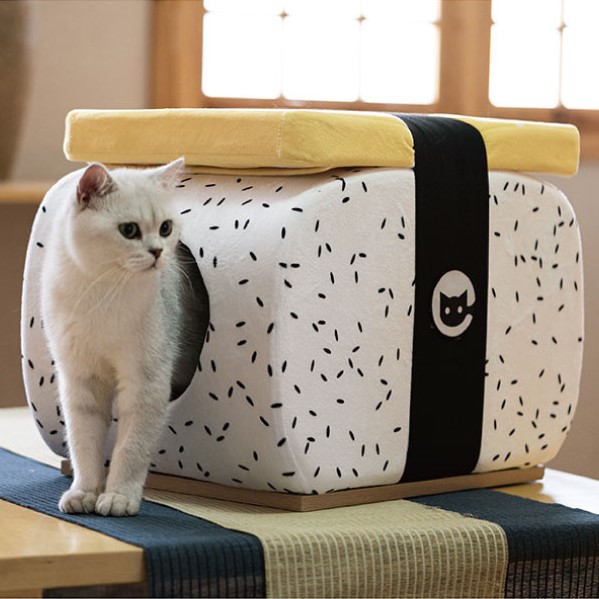 貓奴看到這款椅凳窩一定會尖叫!這款椅凳窩的設計很可愛,整個外型就是一個玉子燒壽司,而且裡頭是中空的,可以讓貓咪很舒服的窩在裡面,再加上它本身也可以當成椅凳,讓貓奴可以坐在上面好好「吸貓」。
