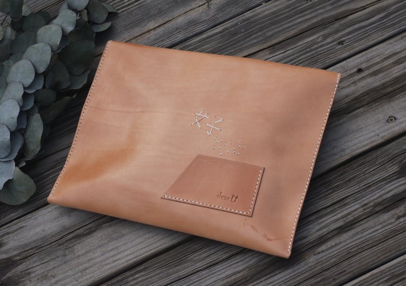 一字釦老派約會皮革信封包,使用旗袍花釦中最單純的一字扣做扣頭,象徵一種老派的浪漫與美感。可以當手拿包,可放任何 A4 尺寸文件,iPAD、筆電也都裝得下。還可以免費鋼印文字,送禮自用兩相宜。