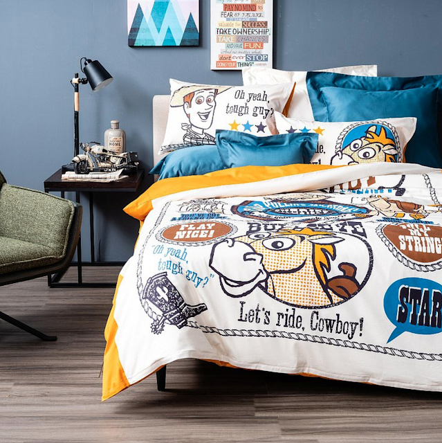 這款獨家設計款玩具總動員寢具組,是舒適的純棉材質,透氣透濕,柔軟舒適,手感柔軟細緻,床包為全包式鬆緊帶,不用擔心在床上打滾的時候容易鬆脫,被套為拉鍊式,四角有綁繩可以固定,超貼心的呢!舒適童趣!玩具總動員純棉寢具這裡買>>