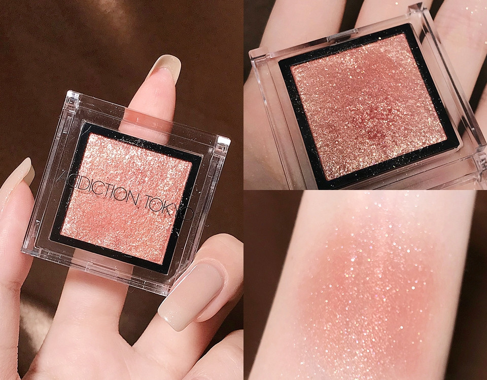 ADDICTION的單色眼影多達百種色選,這款#161是今年的限量色,ME是金屬光澤質地、閃亮的金屬光澤感上眼相當貼膚,#161的玫瑰金底色其實很淺、偏光更是極其細緻,單擦就非常美,對新手來說更加不容易失手。