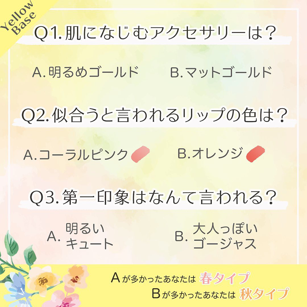是不是曾經化出當季流行妝容後,卻發現自己的妝容總是令自己感到不出彩呢?可能你需要的是以下的「四季妝容診斷」,在日本SNS上櫻花妹子都在瘋傳的、來自日本品牌DHC官方Instagram的「四季妝容診斷」,就能透過以下兩個部份就能知道自己適合春日妝、夏日妝、秋日妝、冬日妝了~