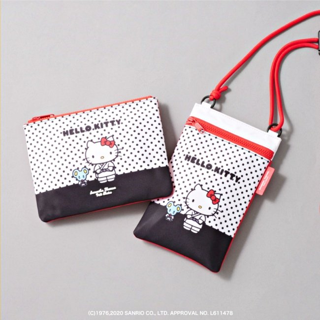 橘藍、紅藍、黑紅、黃藍…多種飽和撞色設計,運用在聯名垂直立袋、多用小袋上,垂直立袋不只可以收納手機,還內建三個小暗袋可以放信用卡等小物,而主角Hello Kitty當然也很盡責(?)的與好友小老鼠「喬伊」開始比賽,不管是拿著網球拍、排球殺球、游泳拚速度還是穿上柔道準備大展身手,通通能一包帶出門!