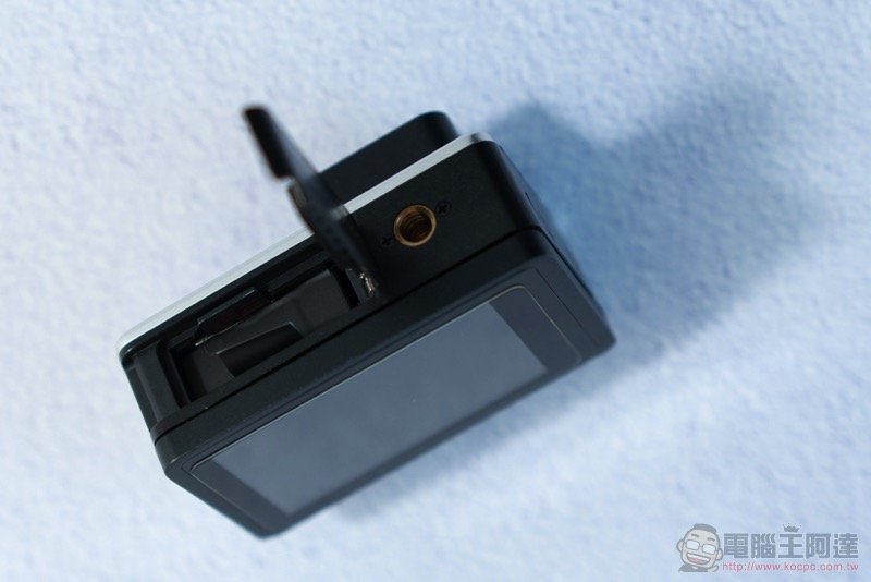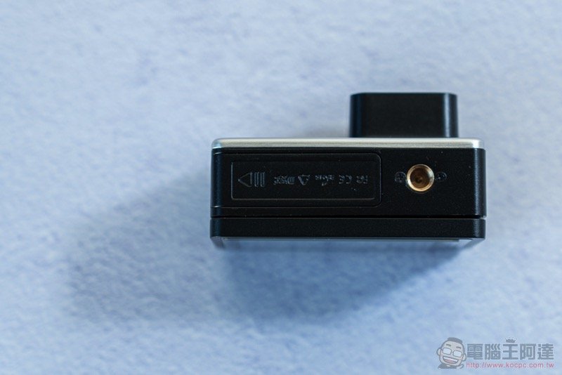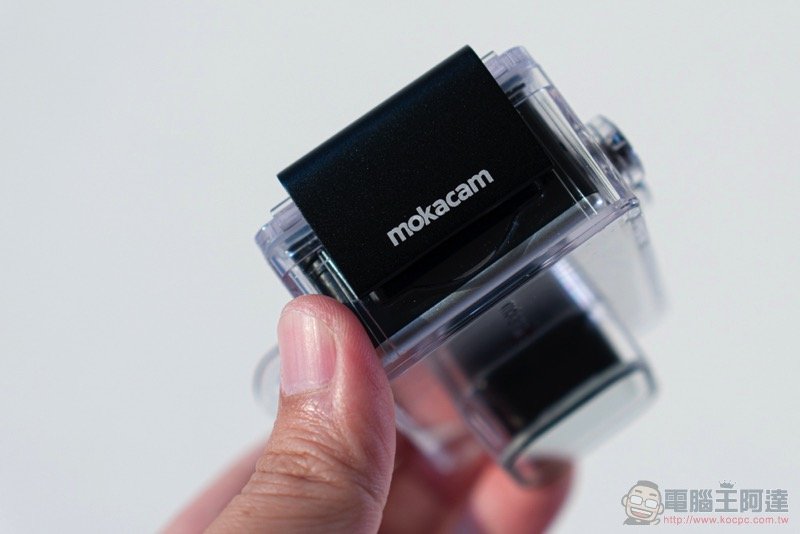 不像其他運動相機還得要麻煩的轉接底座或框體,Mokacam 底部直接給你腳架孔,讓你輕鬆裝上手把等配件使用。孔位也有盡量做到接近鏡軸: