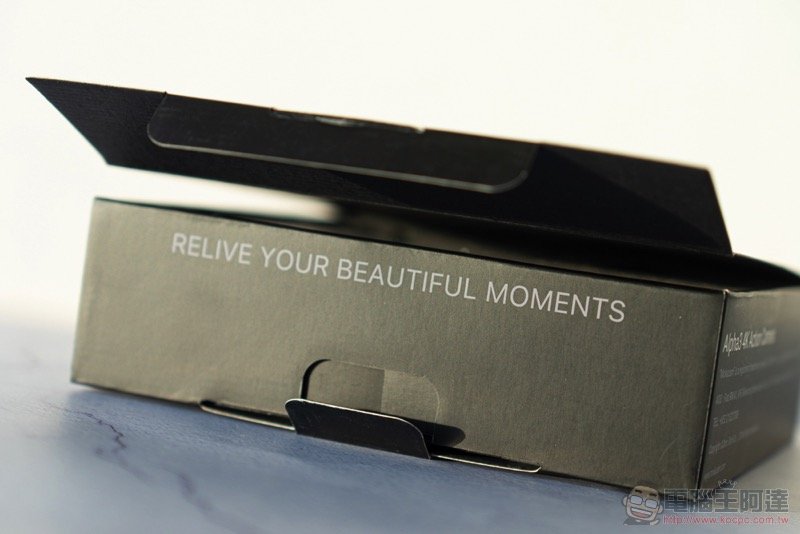 開盒之前可以看到 Mokacam 浪漫的一面,盒裝的「RELIVE YOUR BEAUTIFUL MOMENTS」標語: