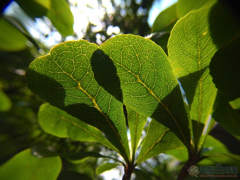 非常輕鬆的就可以將微觀的視角記錄下來 -- 小葉子的紋理都可以清楚拍到,這可能連一般手機相機都不太能拍到呢: