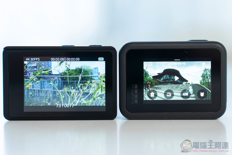 至於誠意在哪,拿出最新的 Hero8 一比,顯示螢幕整個大多了啊!: