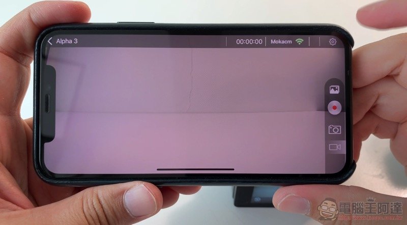 Alpha3 Flip 還支援以 Wi-Fi 搭配 Mokacam app 進行遙控拍攝。設定方法很簡單,只要在拍攝畫面從上往下滑入即可看到快速開關的功能,點擊 Wi-Fi 符號就可以開始連線: