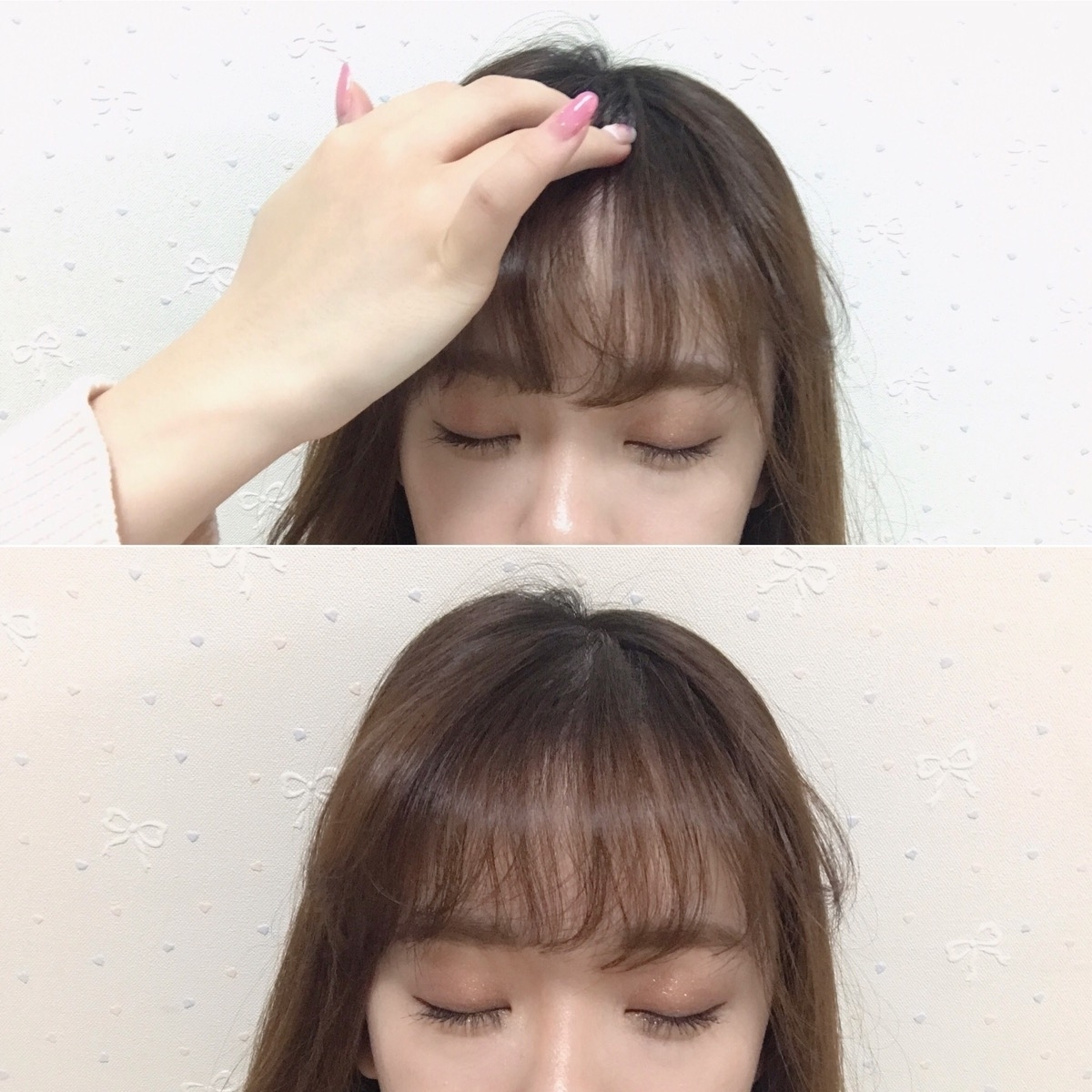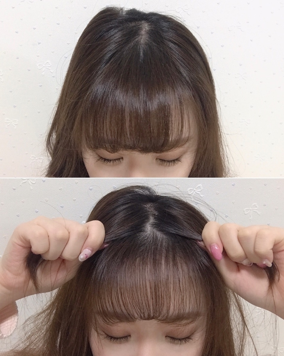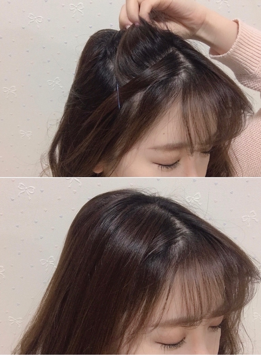 與真正的空氣瀏海相比,偽空氣瀏海的頭髮分線會比較明顯,不過如果固定的位置好,看起來就相當自然。抓出來的髮量多寡、髮夾固定的位置…這些都會改變瀏海給人的感覺,請自行調整、練習看看吧!