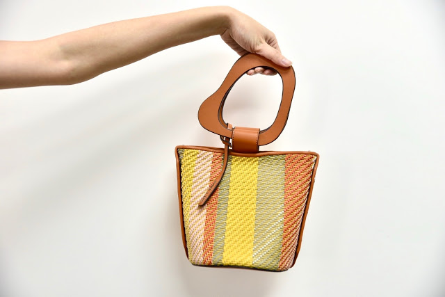 水桶包型本身就擁有豐富的復古、俏皮感,若是再添上木質感的不規則提把設計,就完全讓包款有10分滿分的吸睛效果啦!