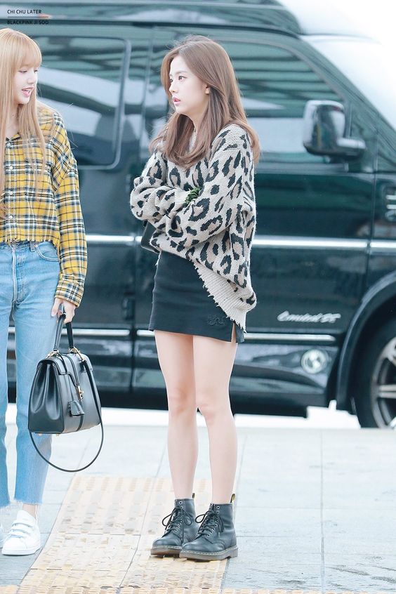 除開休閒類的運動鞋款,小編覺得最容易搭配的就是馬丁鞋了。因為馬丁鞋有「高筒」和「低筒」之分,容易選擇心水的款式。而BLACKPINK也把馬丁鞋搭配得極好,不論是舞台還是街頭時尚都很用心呢~