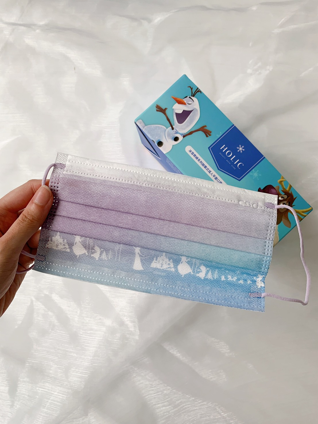除了有人氣角色的可愛印花外,全新口罩的顏色也超夢幻!美麗的藍紫色漸層,不僅浪漫指數破表,也與《冰雪奇緣》給人的氛圍不謀而合!心理作用加乘,或許戴上冰雪奇緣口罩真的會比較涼呢(笑)。