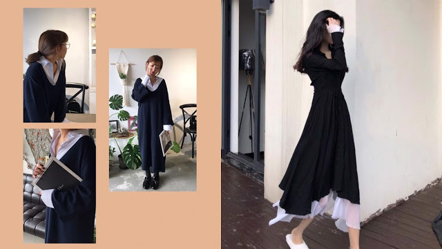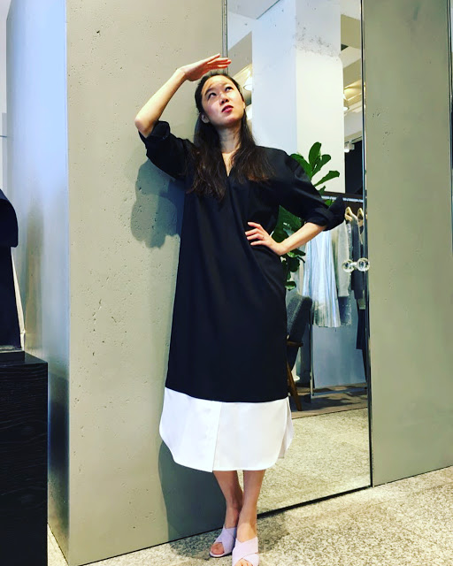 瀏覽孔孝真的IG一定可以發現,穿搭總絕對舒適的她,這種寬鬆長洋裝多得不計其數,但魔鬼藏在細節裡~就是這樣的小巧思啊!深色的大範圍如果用襯衫的純白來襯托,顯得俐落卻不失親和,先幫我加兩件吧!推薦款: