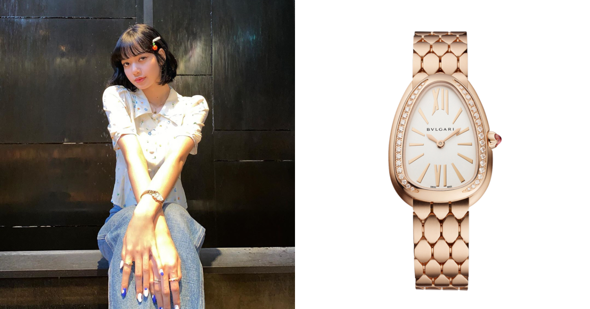 近日成為寶格麗形象大使的的Lisa,IG上除了po出品牌宣傳照外,私服穿搭當然也是選用寶格麗的經典「Serpenti Tubgas」蛇型錶!此一經典系列至今已推出了無數材質、色彩設計,品牌的創意總充滿玩味,女孩們一定能找到屬於你的專屬款式!照片中Lisa配戴最新款式,18K玫瑰金的錶身、銀白色蛋白石錶盤,充滿了優雅女人味。