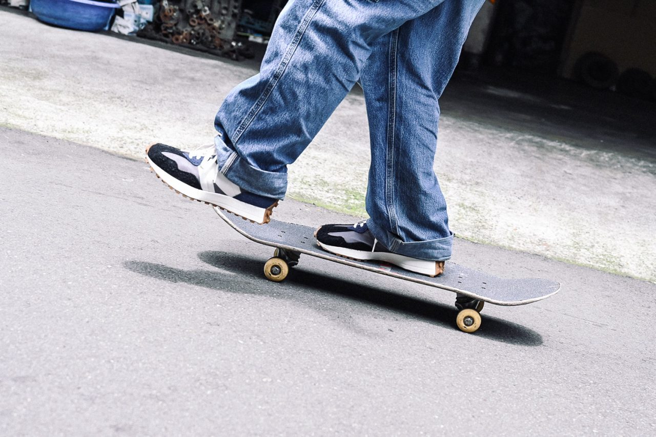 這不是 Uber Eat ,是赤峰街上熟客才有的外送咖啡服務。 Leon 從櫃頭後方拿出滑板,在赤峰街上快速穿梭,才剛眼神交會要打聲招呼,就只看到背影,已經飛快地將咖啡送達四周巷內需要咖啡急救的老客人們。滑板也是 Leon 特別喜愛的街頭文化,是個他熱愛的代步工具。當然不一定是要穿上滑板專用鞋款,在街頭場地大耍特技,是要將滑板融入生活之中,成為無污染的高效率的代步道具,讓 327 也能夠輕鬆駕馭街頭的速度感。一襲 Over Size 的寬鬆上衣,與寬大的丹寧工作褲,流行又回到 90 年代街頭 Look ,而腳上的鞋款融合著經典與現代,讓 New Balance 327 出現在不同的街頭文化中,都有著精彩演繹。