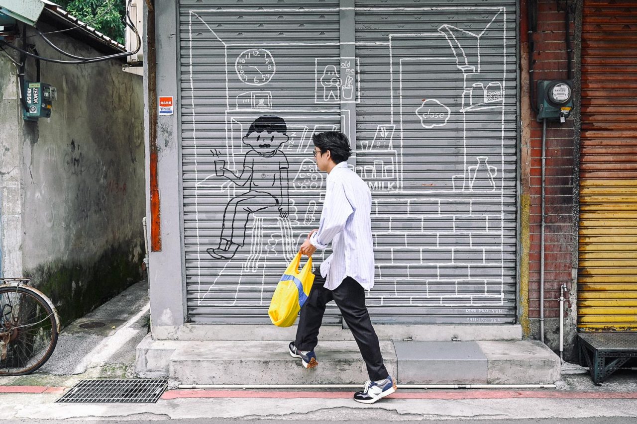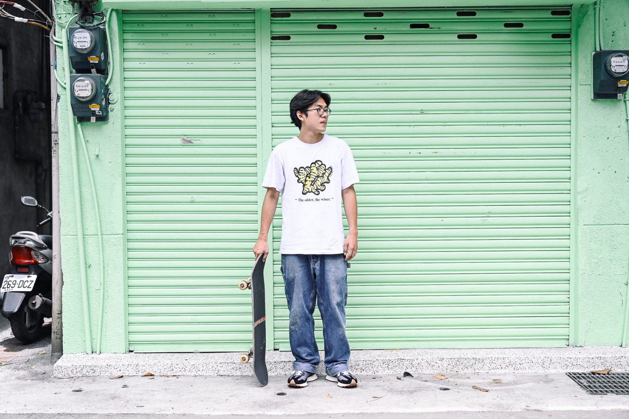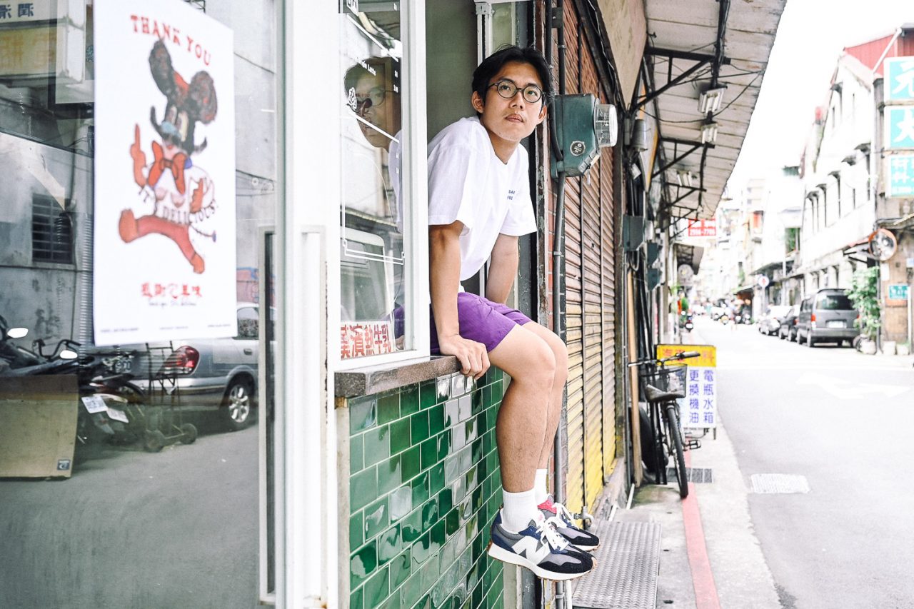 一件白色短 T-shirt ,印製著自家 Logo ,或是趣味標語的字樣,搭配個 Outdoor 亮眼短褲,是 Leon 夏日的基本搭配,清爽又帶著俐落。一雙 New Balance 327 成為他的新亮點,不自覺跟著店裡九十年代音樂的節奏而律動了起來。畢竟在這條街上,供給著咖啡因的重要一站,必須要帶來跟多的活力與熱情。