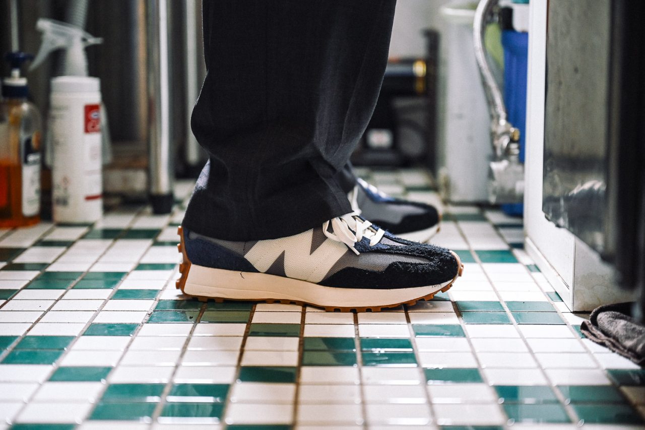 許多咖啡館老闆都喜愛穿著 New Balance 的經典、舒適, Leon 也是。原本就在鞋類相關通路工作的他,對於各式鞋款也相當的熟悉,常常的話題就是勘履首頁又出現了啥鞋款,或是穿起來感覺如何,買一杯咖啡,同時也是交流著各式訊息。當然對於 327 也是觀察許久,對於多樣配色都有心動,不過實際著用的話,還是以基本黑、灰的簡單為主,也比較符合自己日常的穿著風格。