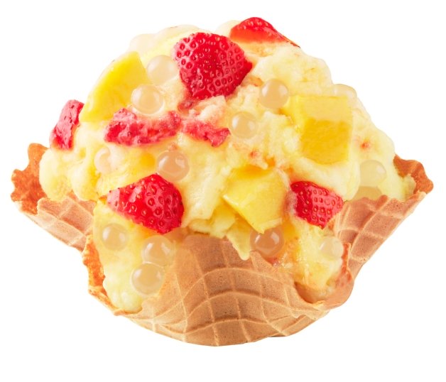 「芒著想荔」特別使用有「太陽果」之稱的屏東枋山愛文芒果,以清爽的「愛文芒果雪貝冰淇淋」為基底,拌入「愛文芒果」和「法國草莓」,最上層更灑上吃下會爆汁的「荔枝QQ球」,從冰淇淋到配料給大家雙倍滿滿的芒果,吃起來鮮黃多汁之外,更因為草莓的關係,所以更有微酸微感,神來一筆的QQ球讓整體的口感層次更多元!