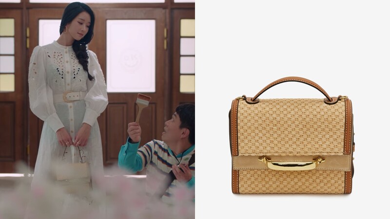 隸屬於LVMH集團旗下的法國頂級皮件老牌Moynat,擁有約170年的製包歷史,近年來頻頻在韓劇中曝光,使得品牌知名度大增,徐睿知也在劇中攜帶Moynat的Tango Rio包款,將探戈的舞步以及河流的蜿蜒線條化為設計靈感,以簡約的方形,搭配金屬的手柄,完美展現品牌低調內斂的氣質。(NT$129,000)