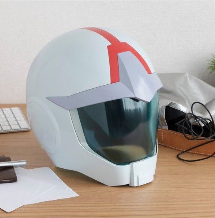 萬代推出「機動戰士鋼彈」中阿姆羅·雷所屬的地球聯邦軍一般駕駛服飛行頭盔,以1:1全尺寸的造型高約250mm /深度約270mm。ABS塑料材質,透明藍色面罩可以拆卸,隨便你怎麼玩都可以,唯一不建議的是當成真的安全帽來戴。