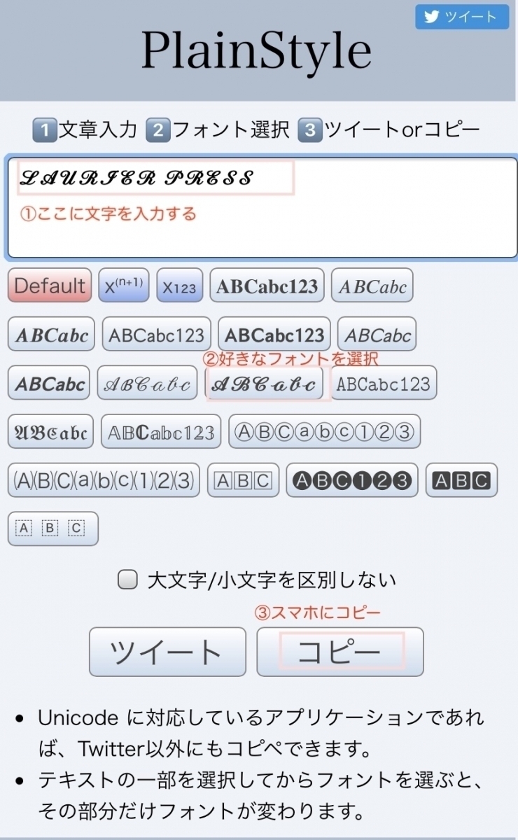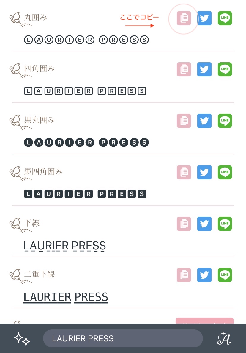 「シャポ庫」一樣也是免費字體轉換網。輸入文字後,選擇想要轉換的字體,接著點選複製鍵,文字就會自動被複製到手機裡。