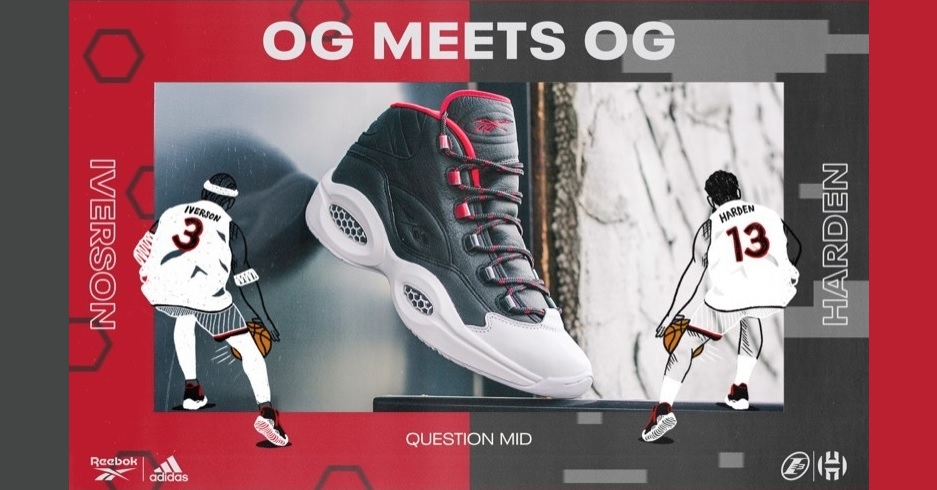 Question Mid 系列由去年年底上市的 ‘Double Cross’ 鴛鴦配色揭開序幕,Iverson 經典的球員生涯故事彷彿歷歷在目;接著推出與 Nice Kicks 聯名的 ‘Bubba Chuck’,帶球迷及收藏家們進入戰神的日常休閒中,近期更推出與紐約街頭服飾品牌 Eric Emanuel 聯名的 ‘Pink Toe’ 配色,呼應 Iverson 的街頭時尚風格,源源不斷地創造出潮流聲量。此次 Reebok 將 adidas Harden Vol.1 ‘Pioneer’ 配色加入 Reebok Question Mid 中,推出的 ‘OG Meets OG’ 不僅再次寫下 adidas x Reebok 兩大品牌聯手出擊的的重要歷史頁,也象徵著傳奇世代的火炬接棒,更有英雄惜英雄的重要意涵,大方加入兩品牌球鞋英雄的諸多質感細節。